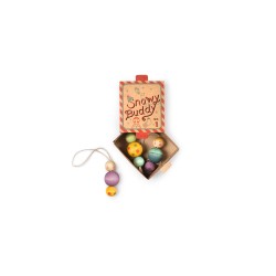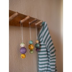 Contient 5 pièces de forme sphérique, peintes à la main. Comprend un fil pour les suspendre. De 25 mm ø à 40 mm ø Dès 10 mois.